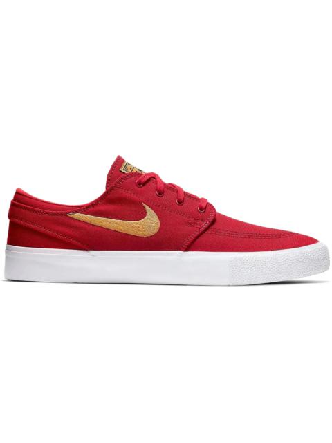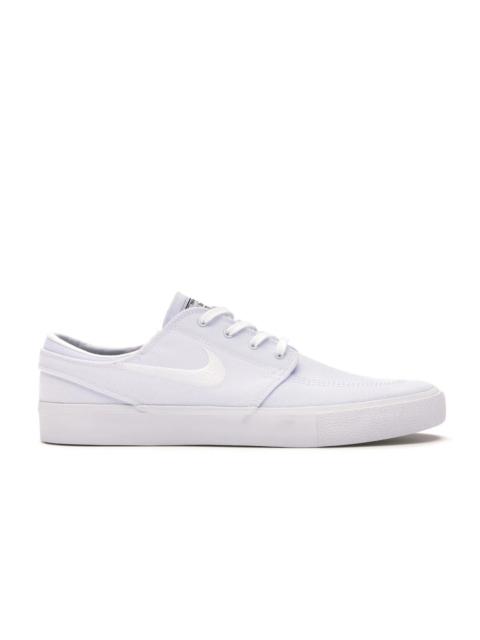 The Nike SB Zoom Stefan Janoski Canvas RM White is a remastered low-top silhouette of the original SB Zoom skateboard-inspired sneaker designed in collaboration by Nike and Stefan Janoski. The Stefan Janoski Canvas RM is a crisp and clean white colorway from the popular Nike SB Zoom line. White is the dominating tone of this silhouette, from the upper, to the tongue and the white gum midsole. Only the bottom outsole boasts a light brown color while the tongue patch sports black text. The upper features the signature toe box stitching, which helps the shoe expand as needed. There is a Zoom Air unit in the back heel for cushioning and support. White Swooshes appear on both sides of the sneaker. According to our experts, this sneaker's timeless and classic design is a standout feature. It is elegant enough for relaxed evenings out, casual enough for everyday errands, and suitable for everything in between. Released on January 10, 2022, the Nike SB Zoom Stefan Janoski Canvas RM White had a retail price of $85. - Style AR7718-100 - Colorway White Gum Light Brown Black White - Retail Price 85 - Release Date 2022-01-10 - Featured false - Product Line Nike SB