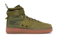 The Nike Sf Af1 Mid Desert Moss Desert Moss was designed by Ben Kirschner with inspiration from the military with an urban exploration sneaker silhouette. The Nike Sf Af1 Mid Desert Moss sneaker has an upper crafted from green and Dessert Moss premium suede, ballistic nylon, and paracord straps. Suede is used for the toecap, vamp, tongue, and arch brace. Dual zipper detailing at the heel and adjustable straps at the throat complement the utilitarian look. Black metal eyelets hold the Dessert Moss laces, and two black metal eyelets are punched into the arch braces. The high-top sneaker has a loop heel pull-tab made using Dessert Moss nylon strap. Black lettering on the lateral heel provides details about the shoe and accent the green ballistic nylon. The gum rubber sole finishes the shoe and features the "AIR" logo on the heel’s mid sole. What do our experts like about the Nike Sf Af1 Mid Desert Moss Desert Moss? Our StockX experts like the utilitarian details introduced by the zippers and straps. The Desert Moss Nike Sf was released on 22nd February 2018 for $200. - Style 917753-301 - Colorway Desert Moss/Desert Moss - Retail Price 200 - Release Date 2018-02-22 - Featured false - Product Line Nike Air Force