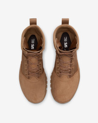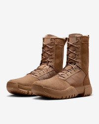 These AR 670-1 compliant boots are inspired by nature and modified for power, combining a lightweight, high-performance design with durable full-grain leather. The unique Goat-Tek sole pattern adapts seamlessly to unpredictable terrain, giving you the stability and adaptive traction you need to dominate the landscape—no matter where your mission takes you. Benefits - Forefoot outsole features Goat-Tek, a softer rubber that allows its wearers to navigate by feel of terrain. - Aggressive outsole pattern provides solid traction on a variety of rugged surfaces. - Internal rock shield relieves pressure from unpredictable surfaces. - Air Zoom technology absorbs impact for cushioning with every step. - Sawtooth design at the arch enhances grip for rope climbing. Product Details - Weight: 20.3 oz (half pair size 10.5) - Pull tab on heel - Foam midsole - Reinforced lacing system - Shown: Coyote/Coyote - Style: FV0572-900