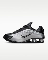 A recrafted version of the early 2000s icon, the Nike Shox R4 replicates the original with its futuristic design lines and performance-like cushioning. Nike Shox columns in the heel distribute weight to maximize comfort while providing a bold look on the streets. Benefits - Synthetic and textile upper is soft and durable. - Nike Shox technology features resilient, flexible columns that compress and regain shape for outstanding cushioning. - Modified, circular Waffle outsole offers great traction. - Laser perforations throughout provide ventilation. Product Details - Foam midsole - Rubber outsole - Not intended for use as Personal Protective Equipment (PPE) - Shown: Metallic Silver/Black/Metallic Silver/Metallic Silver - Style: HQ1988-007