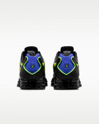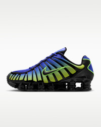 The Nike Shox TL takes mechanical cushioning to the next level. A recrafted version of the 2003 icon, it features breathable mesh in the upper and full-length Nike Shox technology for optimal impact absorption and a bold look on the streets. Benefits - Nike Shox technology combines resilient, flexible columns with moderator plates for outstanding cushioning that compresses and regains its shape. - A combination upper with a full TPU cage is a near-exact replica of the 2003 Nike Shox TL. - Molded overlays throughout the midfoot provide support and a snug fit. - A TPU plate in the heel between the midsole and Nike Shox technology helps provide lateral stability and support. - A foam midsole provides lightweight cushioning. - Non-marking, solid rubber in a modified waffle outsole gives great traction and durability. Product Details - Synthetic and textile upper - Not intended for use as Personal Protective Equipment (PPE) - Shown: Lapis/Volt Ice/Black - Style: AV3595-401