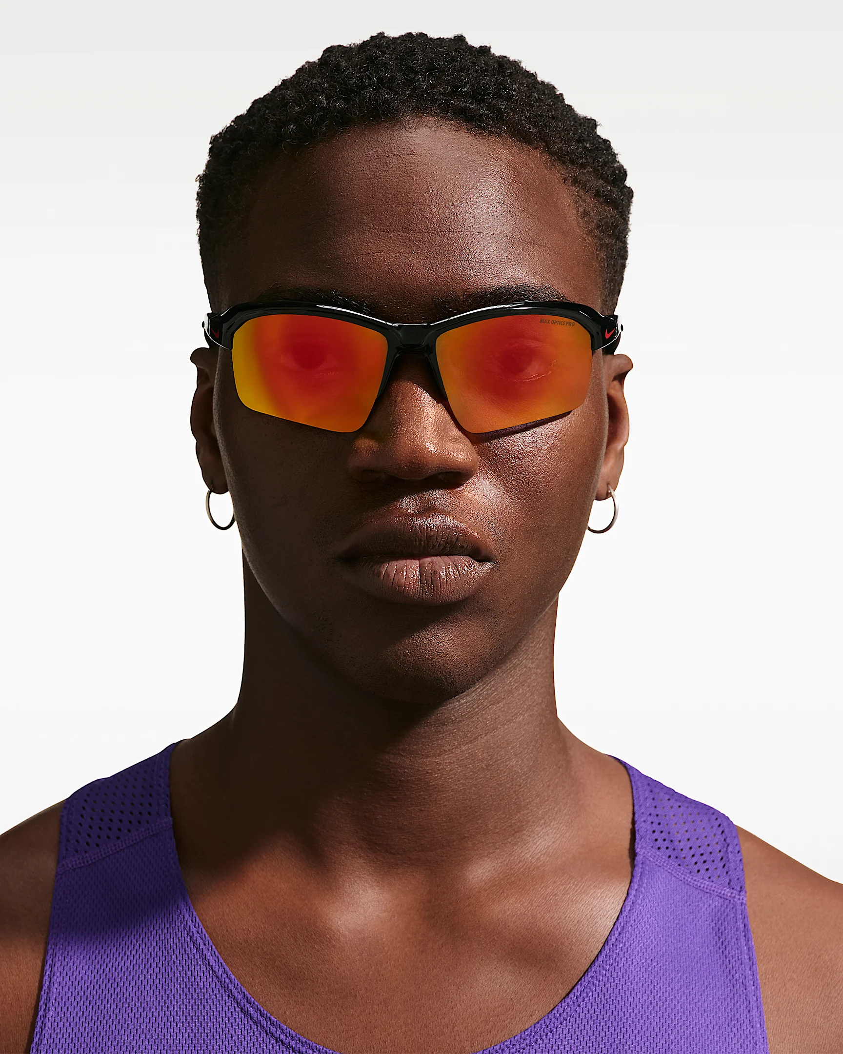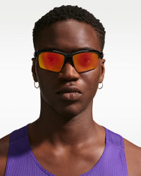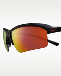The Nike Skylon Rise is an upgrade on a classic. Its refreshed shape features sleek, curved temples that provide a comfortable fit for sports that value simplicity. Designed with durability in mind, the semi-rim construction and updated nose bridge offer a secure grip that won’t slip, ensuring performance you can rely on. Benefits - Frame size: 70mm lens width; 17mm bridge width; 120mm temple length - Nike Road Tint cuts harsh glare and highlights subtle changes in pavement. - Nike Max Optics Pro reduces light reflection and provides precisie vision with hydro-oleophobic coatings to repel water and oil for a clearer view of what’s ahead. - 8-base curved lens and sport wrap frame offers maximum coverage and light blockage. - Soft, comfortable rubber inlay nose pad and temple tips. Product Details - Injected frame material is derived from at least 40% castor bean oil. - 100% UVA/UVB protection. - Shown: Black/Red - Style: NKIQ7185-011