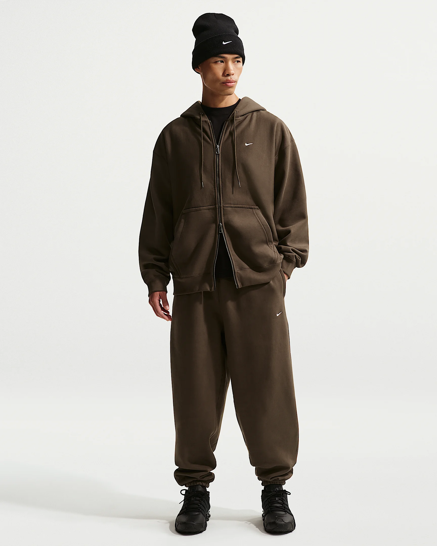 Warm and structured, these pants are crafted with a heavyweight brushed fleece that feels plush on the inside and smooth on the outside, bringing a touch of luxury to your casual, cool-weather layers. Benefits - Elastic waistband has an internal drawcord to let you find the right fit. - Soft and stretchy elastic cuffs rest above your shoes. Product Details - Embroidered Nike Swoosh logo - Body: 84-85% cotton/15-16% polyester; Pocket bag: 100% cotton. - Material percentages may vary. Check label for actual content. - Machine wash - Imported - Shown: Dark Hazel/White - Style: HV1088-212 SIZE & FIT Model is wearing size M and is 5'11"180cm Standard fit: easy and traditional