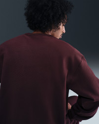 Warm and structured, this sweatshirt is crafted with heavyweight brushed fleece that feels plush on the inside and smooth on the outside, bringing a touch of luxury to your casual, cool-weather layers. The loose fit feels roomy through the body. Product Details - Embroidered Nike Swoosh logo - Ribbed openings - Body: 84-85% cotton/15-16% polyester. Rib: 98% cotton/2% spandex - Material percentages may vary. Check label for actual content. - Machine wash - Imported - Shown: Burgundy Crush/Burgundy Crush/White - Style: HV1086-652 SIZE & FIT Model is wearing size M and is 6′1″185cm Loose fit: roomy and relaxed