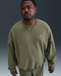 Warm and structured, this sweatshirt is crafted with heavyweight brushed fleece that feels plush on the inside and smooth on the outside, bringing a touch of luxury to your casual, cool-weather layers. The loose fit feels roomy through the body. Product Details - Embroidered Nike Swoosh logo - Ribbed openings - Body: 84-85% cotton/15-16% polyester. Rib: 98% cotton/2% spandex - Material percentages may vary. Check label for actual content. - Machine wash - Imported - Shown: Medium Olive/White - Style: HV1086-222 SIZE & FIT Big & Tall model is wearing size 3XL and is 6'5"196cm Loose fit: roomy and relaxed