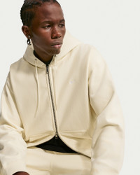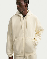Bring a touch of luxury to your casual, cool-weather layers with this warm and structured hoodie. It's crafted with a heavyweight brushed fleece that feels plush on the inside and smooth on the outside. Benefits - Loose fit feels roomy through the body. - Single-panel, lined hood is equipped with a drawcord for adjusting the fit. Product Details - Embroidered Nike Swoosh logo - Divided kangaroo pocket - Two-way zipper - Ribbed openings - Body: 84-85% cotton/15-16% polyester. Hood lining: 84-85% /cotton/15-16% polyester. - Material percentages may vary. Check label for actual content. - Machine wash - Imported - Shown: Coconut Milk/White - Style: HV1084-113 SIZE & FIT Model is wearing size M and is 6′1″185cm Loose fit: roomy and relaxed