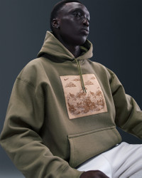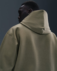Warm and structured, this hoodie is crafted with a heavyweight brushed fleece that feels plush on the inside and smooth on the outside, bringing a touch of luxury to your casual, cool-weather layers. Its loose fit feels roomy through the body. Product Details - Hood with drawcord - Ribbed hem and cuffs - Pouch pocket - Body: 85% cotton/15% polyester. Hood lining: 85% cotton/15% polyester. - Material percentages may vary. Check label for actual content. - Machine wash - Imported - Shown: Medium Olive/Parachute Beige - Style: HV4114-222 SIZE & FIT Model is wearing size M and is 6′0″183cm Loose fit: roomy and relaxed