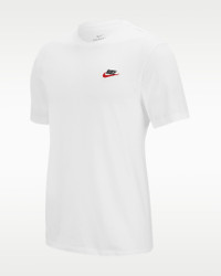 The Nike Sportswear Club T-Shirt is made with our everyday cotton fabric and a classic fit for a familiar feel right out of the bag. An embroidered Futura logo on the chest provides a signature Nike look. Benefits - The classic fit tee silhouette is relaxed through the body and hips. - Everyday cotton fabric feels soft and lightweight. Product Details - Standard fit for a relaxed, easy feel - Fabric: 100% cotton - Machine wash - Imported - Shown: White/Black/University Red - Style: AR4997-100 SIZE & FIT Standard fit: easy and traditional