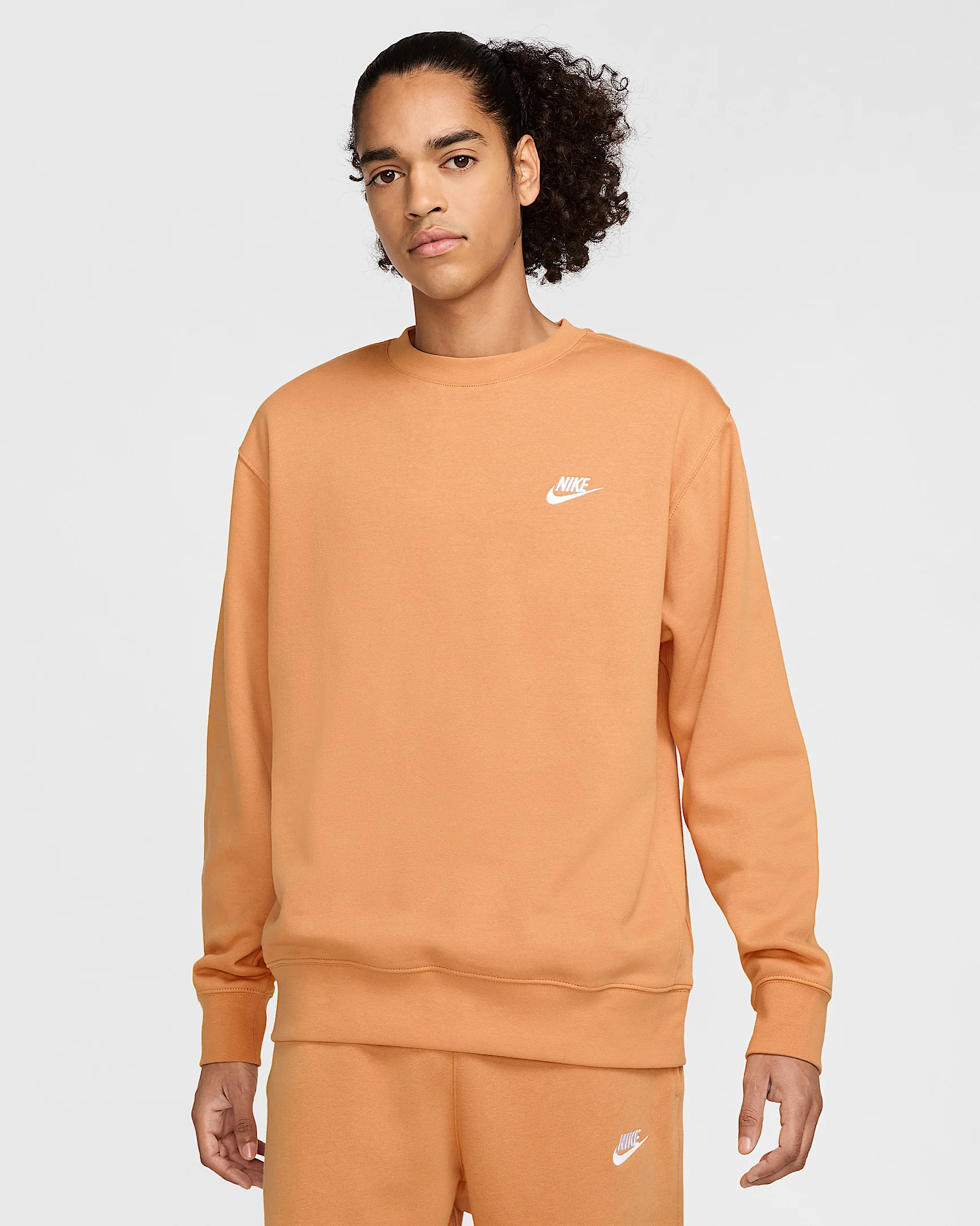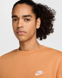 A closet staple, the Nike Sportswear Club Fleece Crew combines a classic embroidered logo on the left chest with the soft comfort of fleece for an elevated everyday look. Product Details - Standard fit for a relaxed, easy feel - Fabric: 80-82% cotton/18-20% polyester - Machine wash - Imported - Note: Material percentages may vary depending on factory. Check label for actual content. - Shown: Copper Moon/White - Style: BV2662-856 SIZE & FIT Model is wearing size M and is 6′1″185cm Standard fit: easy and traditional