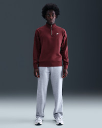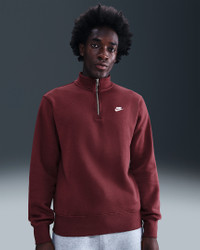 Clean meets casual with this classic half-zip top. Our midweight brushed fleece feels extra soft on the inside and smooth on the outside, helping you stay cozy while keeping its structured shape.The standard fit feels relaxed through the body. Product Details - Embroidered Nike logo - Ribbed hem and cuffs - Body: 80% cotton/20% polyester. Hood lining: 80% cotton/20% polyester. - Machine wash - Imported - Shown: Dark Team Red/Dark Team Red/White - Style: FN3864-619 SIZE & FIT Model is wearing size M and is 6′0″183cm Standard fit: easy and traditional