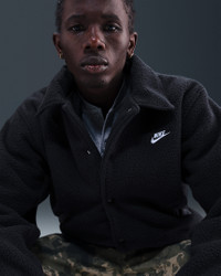 Sideline style for your everyday. This coaches jacket is crafted with soft high-pile fleece and Therma-FIT tech for warmth and comfort. Benefits - Nike Therma-FIT technology helps manage your body’s natural heat to help keep you warm in cold-weather conditions. - Loose fit feels roomy through the body. Product Details - Embroidered logo - Snap closure - Hand pockets - Faux Fur: 100% polyester. Rib: 97% polyester/3% spandex; Pocket bags: 100% polyester. - Machine wash - Imported - Shown: Black/White - Style: HV1429-010 SIZE & FIT Model is wearing size M and is 6′1″185cm Loose fit: roomy and relaxed