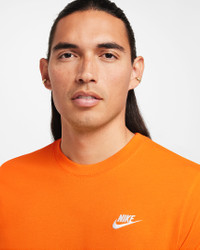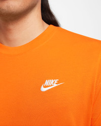 The Nike Sportswear Club T-Shirt is made with our everyday cotton fabric and a classic fit for a familiar feel right out of the bag. An embroidered Futura logo on the chest provides a signature Nike look. Benefits - The classic fit tee silhouette is relaxed through the body and hips. - Everyday cotton fabric feels soft and lightweight. Product Details - Standard fit for a relaxed, easy feel - Fabric: 100% cotton - Machine wash - Imported - Shown: Safety Orange - Style: AR4997-819 SIZE & FIT Standard fit: easy and traditional