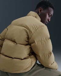 Built to keep you warm and dry when the weather is anything but, this woven jacket is crafted with smooth, water-repellent fabric and equipped with Therma-FIT technology. The loose fit is roomy through the body for easy layering. Benefits - Nike Therma fabric helps keep you warm. - Down insulation creates a premium, lightweight construction that packs in the heat. Product Details - Embroidered Nike Futura logo - Zippered hand pockets - Body: 100% polyester; Lining: 100% polyester; Fill: duck down (Minimum 85% down)/(APA version: 85% duck down/15% feathers) - Machine wash - Imported - Shown: Parachute Beige/White - Style: IB2975-297 SIZE & FIT Model is wearing size M and is 6′3″189cm Loose fit: roomy and relaxed