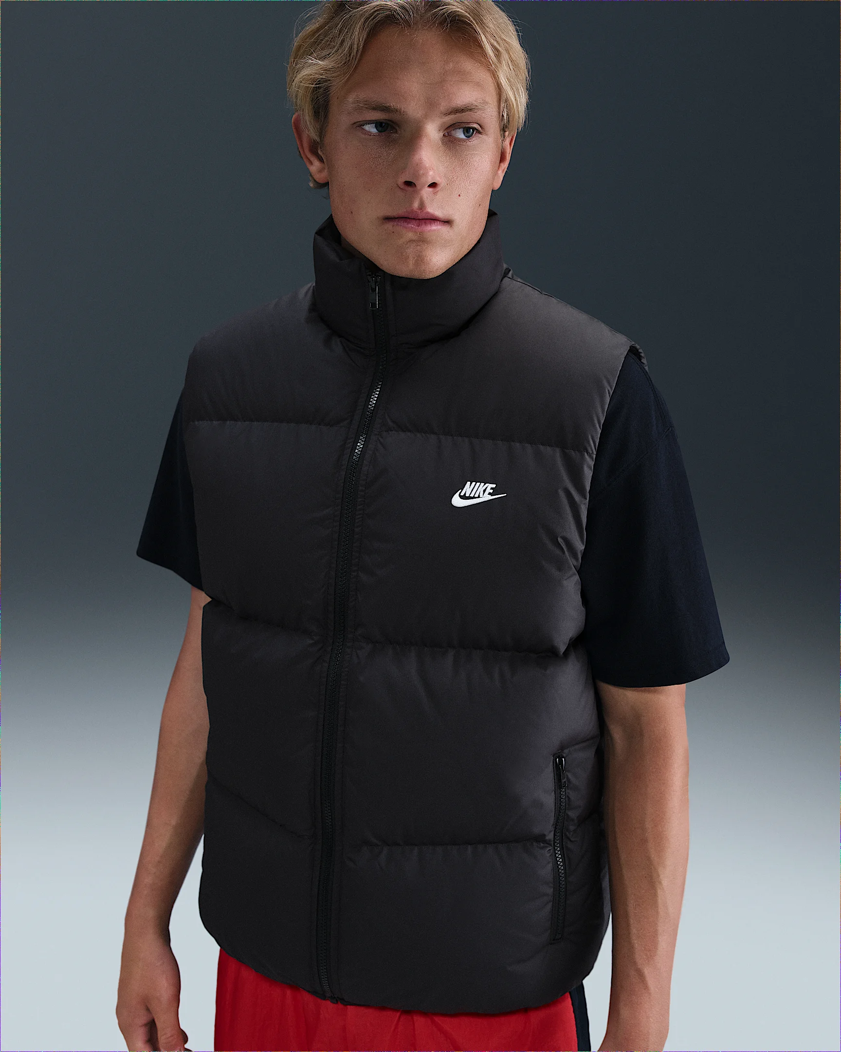 This woven vest is crafted with smooth, water-repellant fabric and Therma-FIT tech to help you stay warm and dry. The loose fit is roomy through the body, making it easy to layer without feeling too bulky. Benefits - Nike Therma fabric helps keep you warm. - Down insulation adds warmth for a lightweight construction that packs in the heat. Product Details - Embroidered Nike Futura logo - Zippered hand pockets - Body: 100% polyester; Lining: 100% polyester; Fill: duck down (Minimum 85% down)/(APA version: 85% duck down/15% feathers) - Machine wash - Imported - Shown: Black/White - Style: IB2977-010 SIZE & FIT Model is wearing size M and is 6′1″185cm Loose fit: roomy and relaxed