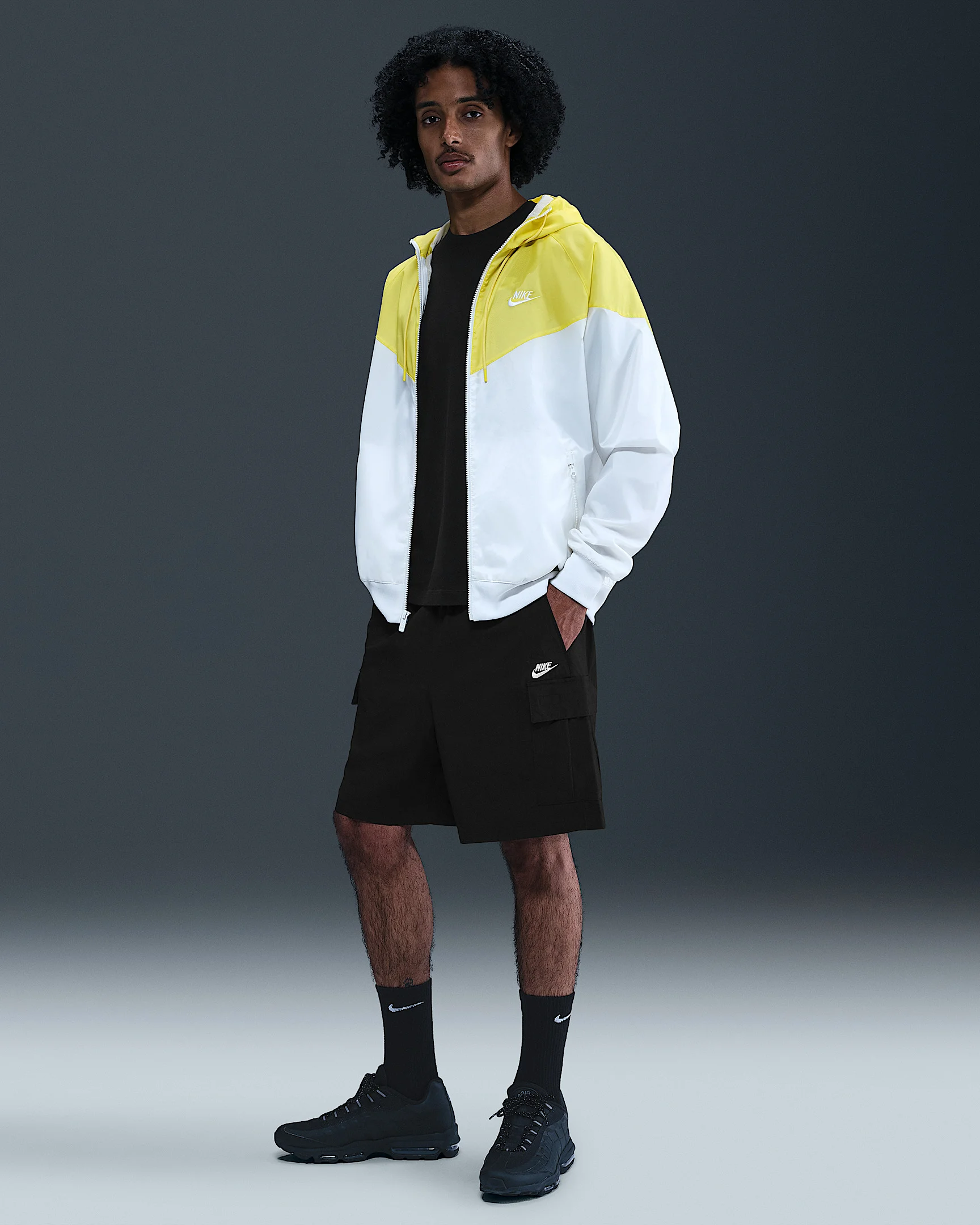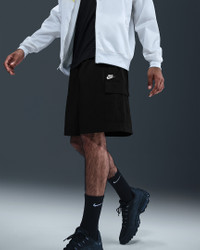 Made for everyday wear, these woven shorts add Nike Club comfort to a dependable utility style. They're designed to hit above the knee, with a roomy fit through the seat and thighs. Benefits - An elastic waistband and round internal drawcord deliver a custom fit at the waist. - The oversized fit feels roomy through the seat and thighs for easy movement and casual styling. Product Details - Embroidered Nike Futura logo - Hand pockets - Cargo pockets - 100% nylon - Machine wash - Imported - Shown: Black/White - Style: IH5047-010 SIZE & FIT Model is wearing size M and is 6′1″185cm Oversized fit: exaggerated and spacious