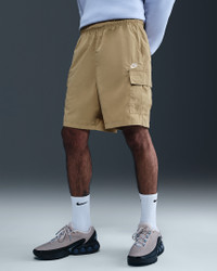 Made for everyday wear, these woven shorts add Nike Club comfort to a dependable utility style. They're designed to hit above the knee, with a roomy fit through the seat and thighs. Benefits - An elastic waistband and round internal drawcord deliver a custom fit at the waist. - The oversized fit feels roomy through the seat and thighs for easy movement and casual styling. Product Details - Embroidered Nike Futura logo - Hand pockets - Cargo pockets - 100% nylon - Machine wash - Imported - Shown: Parachute Beige/White - Style: IH5047-297 SIZE & FIT Model is wearing size M and is 6′1″185cm Oversized fit: exaggerated and spacious