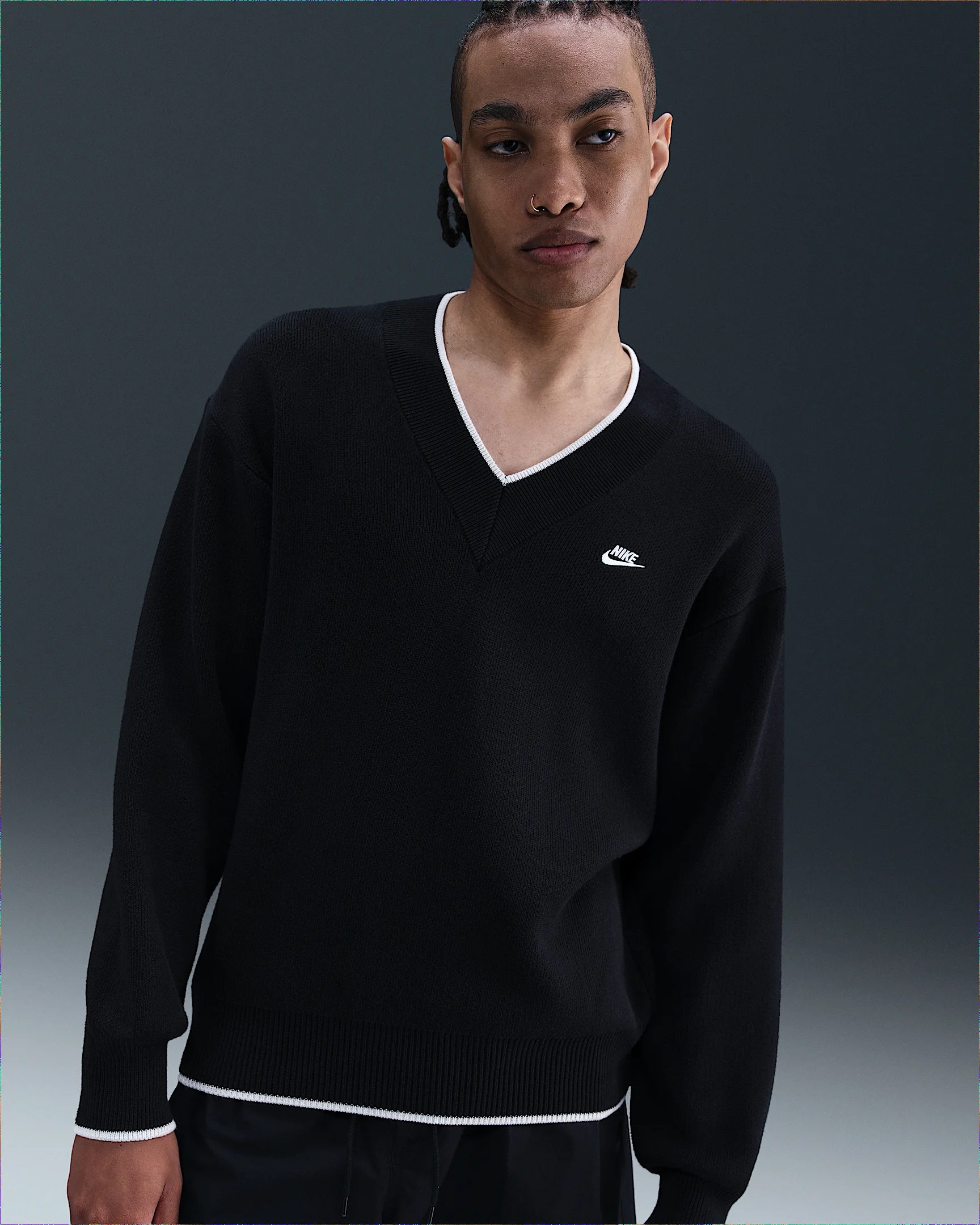 Classic style meets the comfort of Club. This soft, knit sweater has a loose fit that feels roomy through the body. Product Details - Embroidered logo - Ribbed hem and cuffs - 98% cotton/1% spandex/1% polyester. - Machine wash - Imported - Shown: Black/Sail/White - Style: HV1419-010 SIZE & FIT Model is wearing size M and is 6′2″188cm Loose fit: roomy and relaxed