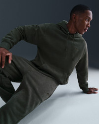 Clean meets casual with this classic hoodie. Our midweight brushed fleece feels extra soft on the inside and smooth on the outside, helping you stay cozy while keeping its structured shape. The washed treatment creates a faded, worn-in look while the standard fit feels relaxed through the body. Product Details - Embroidered Nike logo - Pouch pocket - Hood with drawcord - Ribbed hem and cuffs - Body: 80% cotton/20% polyester. Hood lining: 80% cotton/20% polyester. - Material percentages may vary. Check label for actual content. - Machine wash - Imported - Shown: Sequoia/Sequoia - Style: IQ1219-355 SIZE & FIT Model is wearing size M and is 5′11″179cm Standard fit: easy and traditional