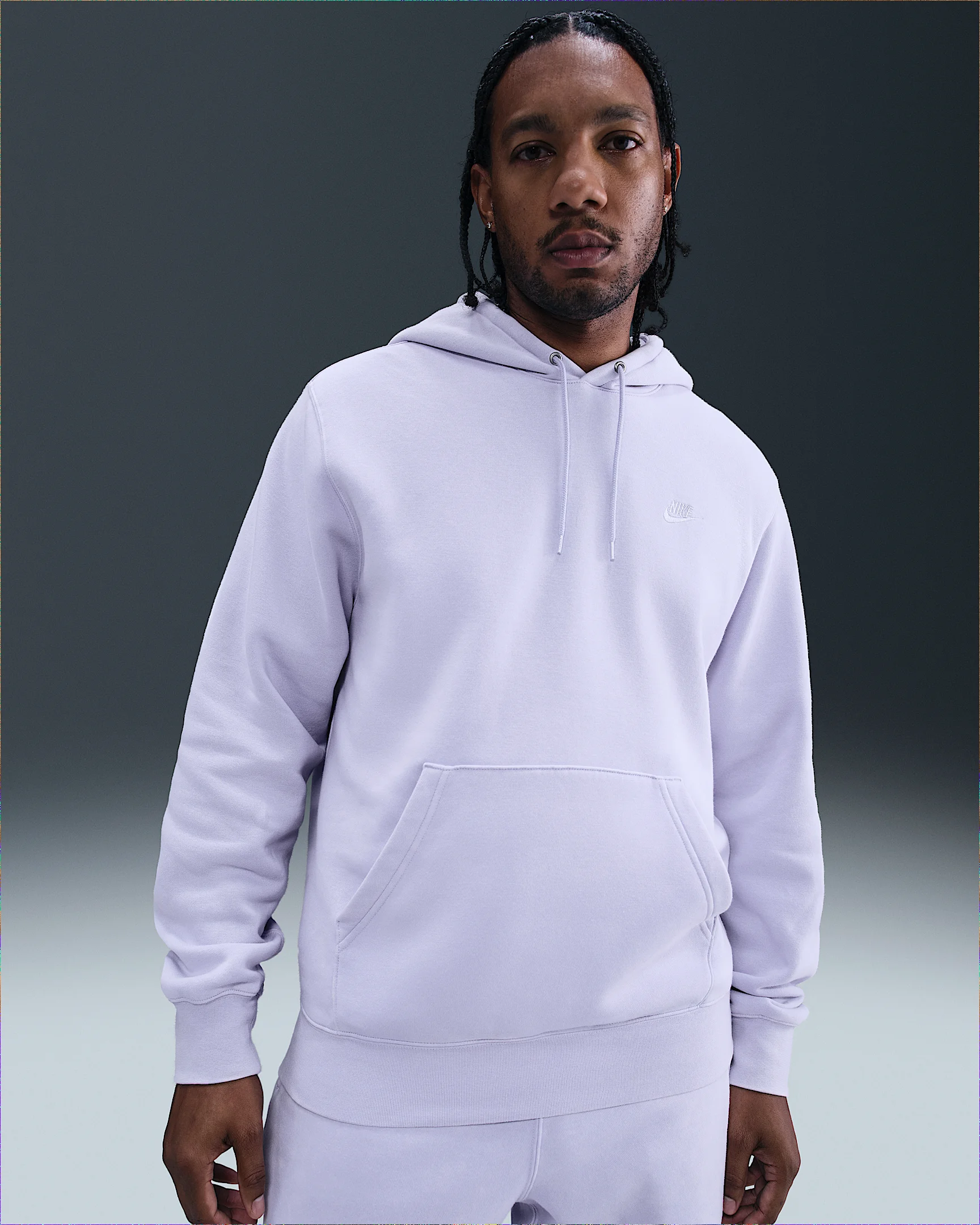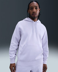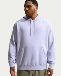 Clean meets casual with this classic hoodie. Our midweight brushed fleece feels extra soft on the inside and smooth on the outside, helping you stay cozy while keeping its structured shape. The washed treatment creates a faded, worn-in look while the standard fit feels relaxed through the body. Product Details - Embroidered Nike logo - Pouch pocket - Hood with drawcord - Ribbed hem and cuffs - Body: 80% cotton/20% polyester. Hood lining: 80% cotton/20% polyester. - Material percentages may vary. Check label for actual content. - Machine wash - Imported - Shown: Ghost/Ghost - Style: IQ1219-057 SIZE & FIT Model is wearing size M and is 6′0″183cm Standard fit: easy and traditional