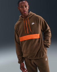 Smooth on the outside, soft on the inside, this fleece is upgraded with Therma-FIT tech for warmth and comfort. Benefits - Nike Therma-FIT technology helps manage your body’s natural heat to help keep you warm in cold-weather conditions. - Loose fit feels roomy through the body. Product Details - Embroidered logo - Hood with drawcord - Pouch pocket - Elastic hem and cuffs - 100% polyester - Machine wash - Imported - Shown: Mosswood Brown/Campfire Orange/White - Style: HV1439-235 SIZE & FIT Model is wearing size M and is 5′11″179cm Loose fit: roomy and relaxed