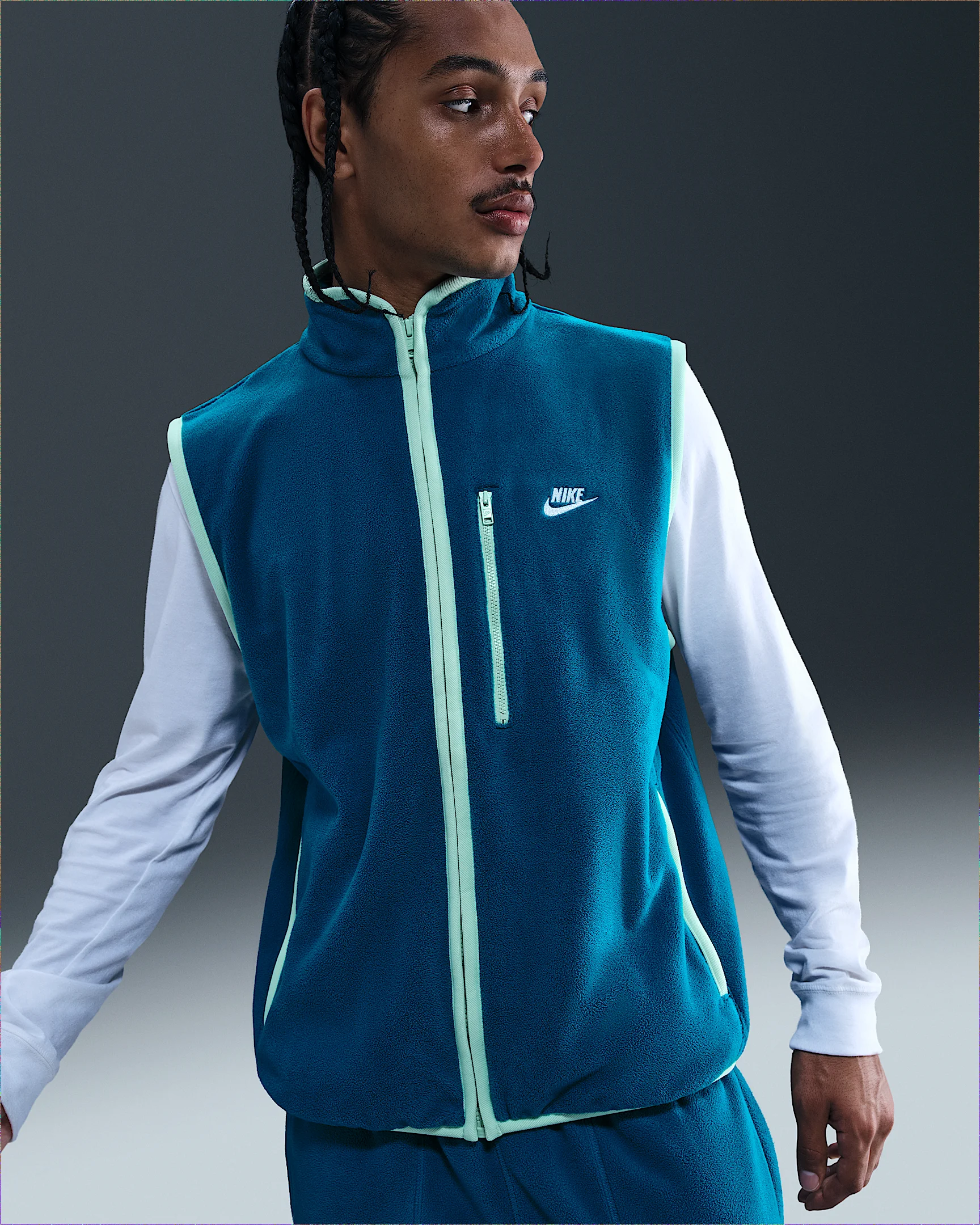 The answer for those tricky in-between temps. Smooth on the outside, soft on the inside, this vest has Therma-FIT tech to help keep you warm and comfortable. Benefits - Nike Therma-FIT technology helps manage your body’s natural heat to help keep you warm in cold-weather conditions. - Loose fit feels roomy through the body. Product Details - Embroidered logo - Hand pockets - Zippered chest and hand pockets - Elastic binding at hem, arm openings and collar - 100% polyester - Machine wash - Imported - Shown: Green Abyss/Mint Foam/White - Style: HV1446-301 SIZE & FIT Model is wearing size M and is 6′1″185cm Loose fit: roomy and relaxed