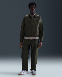 Made for everyday wear, these woven cargo pants add Nike Club comfort to a classic utility style. They're roomy through the seat and thighs with a bungee at the ankle to adjust the fit around your shoes. Benefits - The loose fit feels roomy through the seat and thighs for easy movement and casual styling. - An elastic waistband and button closure deliver a comfortable fit at your waist. Product Details - Embroidered Nike Futura logo - Zipper fly - Hand pockets - Cargo pockets - 97% cotton/3% spandex. Pocket Bags: 87% polyester/13% cotton - Machine wash - Imported - Shown: Sequoia/Sequoia - Style: HV1433-355 SIZE & FIT Model is wearing size M and is 6′1″185cm Loose fit: roomy and relaxed