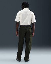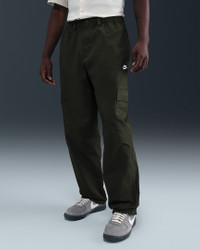 Made for everyday wear, these woven cargo pants add Nike Club comfort to a classic utility style. They're roomy through the seat and thighs with a bungee at the ankle to adjust the fit around your shoes. Benefits - The loose fit feels roomy through the seat and thighs for easy movement and casual styling. - An elastic waistband and button closure deliver a comfortable fit at your waist. Product Details - Embroidered Nike Futura logo - Zipper fly - Hand pockets - Cargo pockets - 97% cotton/3% spandex. Pocket Bags: 87% polyester/13% cotton - Machine wash - Imported - Shown: Sequoia/White - Style: HV1433-356 SIZE & FIT Model is wearing size M and is 6′1″185cm Loose fit: roomy and relaxed