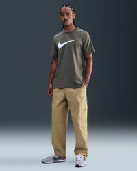 Made for everyday wear, these woven cargo pants add Nike Club comfort to a classic utility style. They're roomy through the seat and thighs with a bungee at the ankle to adjust the fit around your shoes. Benefits - The loose fit feels roomy through the seat and thighs for easy movement and casual styling. - An elastic waistband and button closure deliver a comfortable fit at your waist. Product Details - Embroidered Nike Futura logo - Zipper fly - Hand pockets - Cargo pockets - 97% cotton/3% spandex. Pocket Bags: 87% polyester/13% cotton - Machine wash - Imported - Shown: Parachute Beige/White - Style: HV1433-297 SIZE & FIT Model is wearing size M and is 6′1″185cm Loose fit: roomy and relaxed