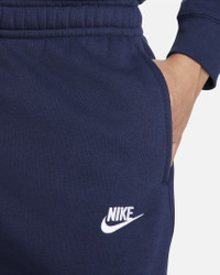 A closet staple, the Nike Sportswear Club Fleece Joggers combine a classic look with the soft comfort of fleece for an elevated, everyday look that you can wear every day. Product Details - Standard fit for a relaxed, easy feel - Body: 80-82% cotton/18-20% polyester. Side pocket knuckle side/back pocket: 100% cotton. Side pocket palm side: 80% cotton/20% polyester. - Material percentages may vary. Check label for actual content. - Machine wash - Imported - Shown: Midnight Navy/Midnight Navy/White - Style: BV2671-410 SIZE & FIT Female model is wearing size XS and is 5'9"175cm Male model is wearing size M and is 6'0"183cm Standard fit: easy and traditional