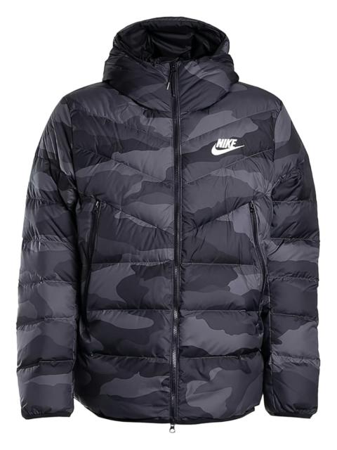 camouflage-print hooded puffer jacket