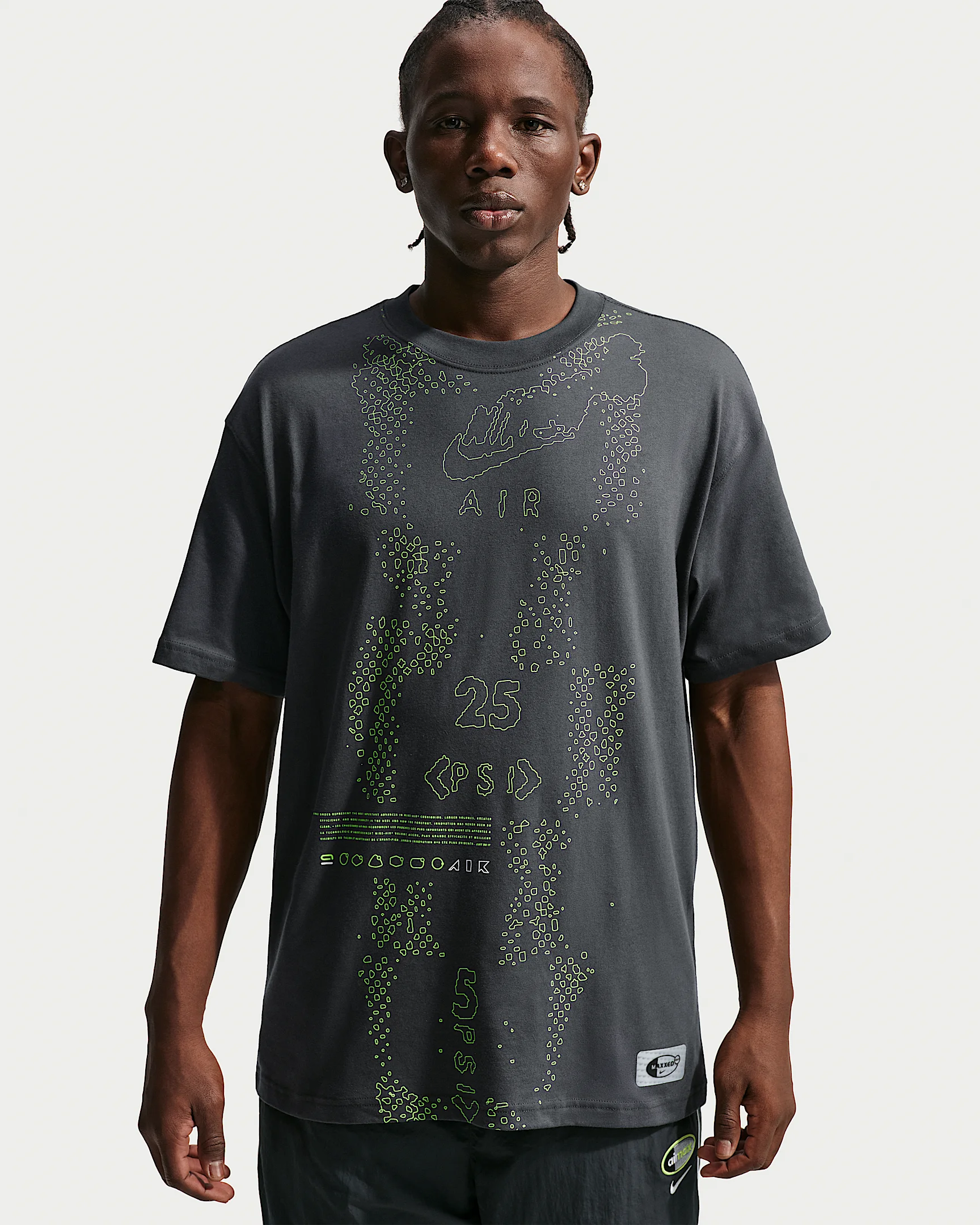 Elevate your essentials with this Max90 tee. It has a loose fit with dropped shoulders, longer sleeves and a roomy feel through the body. Midweight cotton feels soft and slightly structured for durable, daily comfort. Product Details - Ribbed collar - 100% cotton - Machine wash - Imported - Shown: Dark Smoke Grey/Neon Yellow - Style: IQ1004-070 SIZE & FIT Model is wearing size M and is 6′1″185cm Loose fit: roomy and relaxed