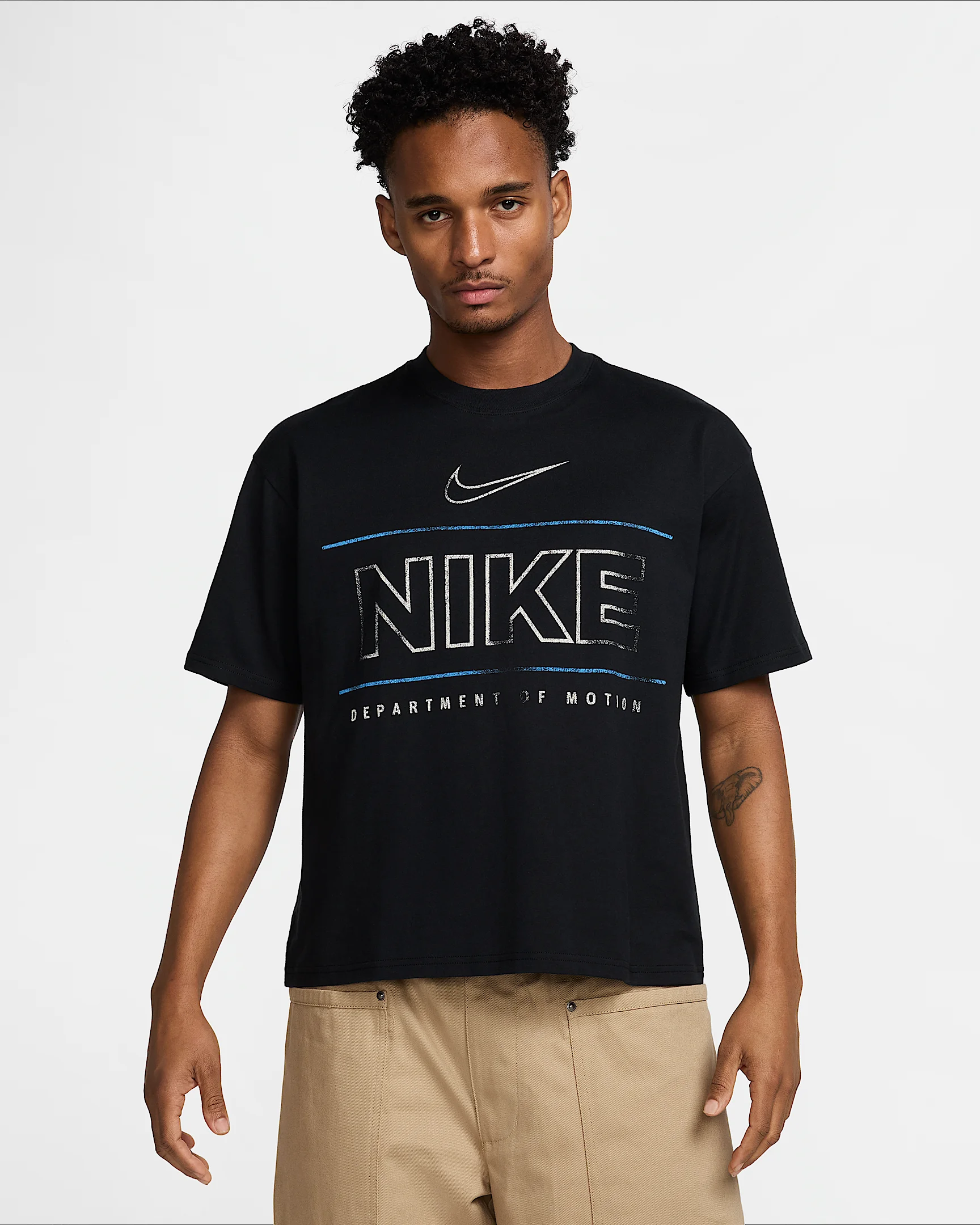 Classic yet casual, this tee has a relaxed feel and boxy cut. Heavyweight cotton fabric has a stiff drape and structured feel. Product Details - Ribbed collar - 100% cotton - Machine wash - Imported - Shown: Black - Style: IM0447-010 SIZE & FIT Model is wearing size M and is 6′2″188cm Standard fit: easy and traditional