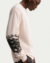 This graphic, waffle-knit top gives you casual comfort. Dropped shoulders and extra room through the body give you a roomy fit. Product Details - 100% cotton - Ribbed collar and cuffs - Machine wash - Imported - Shown: Chalk - Style: IQ1016-103 SIZE & FIT Model is wearing size M and is 6′3″189cm Standard fit: easy and traditional
