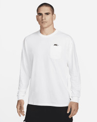 Part of our Premium Essentials collection, this closet-staple tee puts an elevated finish on the long-sleeve pocket t-shirt. Made with heavyweight cotton, the Max90 fit gives you extra room to move and keeps your style casual. Benefits - Dropped shoulders and a roomy fit through the body and hips give the Max90 silhouette a relaxed and casual look. - Heavyweight cotton fabric feels structured and premium. - Embroidered Futura logo above the pocket adds a signature Nike finish. Product Details - Loose fit for a roomy feel - Ribbed cuffs and collar - 100% cotton - Machine wash - Imported - Shown: White/Black - Style: DR7929-100 SIZE & FIT Model is wearing size M and is 6'2"189cm Big & Tall model is wearing size 2XL and is 6'5"196cm Loose fit: roomy and relaxed