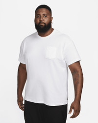 The Nike Sportswear Premium Essentials T-Shirt is made with heavyweight cotton jersey and a loose fit for a soft, sturdy feel you can enjoy for years to come. The embroidered Futura is partially covered by the pocket on this clean, comfortable tee. This product is made with at least 75% organic cotton fibers. Benefits - Dropped shoulders, longer sleeves and a roomy fit through the body and hips give the Max 90 silhouette a relaxed and casual look. - It has a stiff drape and dry hand for a smooth yet sturdy feel. Product Details - Loose fit for a roomy feel - Embroidered Futura logo - Woven label - 100% Cotton - Machine wash - Imported - Shown: White/White - Style: DQ9295-100 SIZE & FIT Loose fit: roomy and relaxed