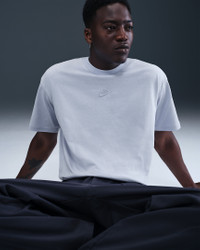The Nike Sportswear Premium Essentials T-Shirt has a loose fit for a carefree, comfortable look. Its heavyweight organic cotton fabric feels thick and soft. This product is made with at least 75% organic cotton fibers. Benefits - Loose-fitting design features dropped shoulders and room through the chest and shoulders for a relaxed look and feel. - Heavyweight cotton jersey has a stiff drape and dry hand for a crisp, thick feel. - Embroidered logo front and center makes a subtle statement. Product Details - Loose fit for a roomy feel - 100% cotton - Machine wash - Imported - Woven label - Shown: Ghost - Style: DO7392-057 SIZE & FIT Model is wearing size M and is 6′3″189cm Loose fit: roomy and relaxed Fits large; we recommend ordering a size down