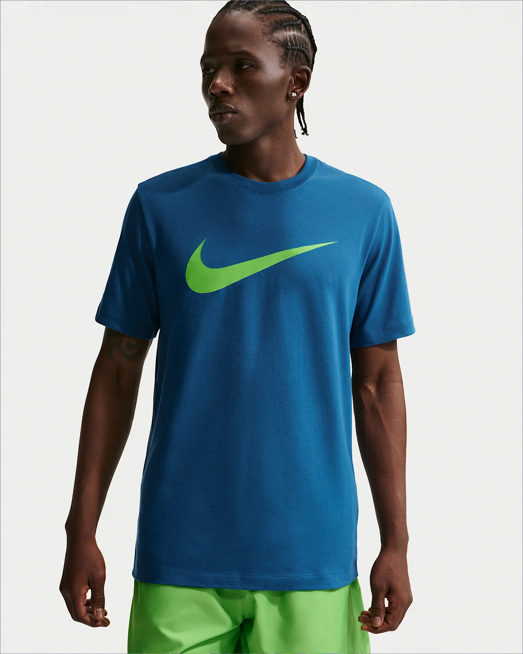 Big and bold, the Nike Sportswear T-Shirt offers soft cotton construction and a prominent graphic at the chest. Benefits - This lightweight jersey fabric has a soft feel perfect for everyday wear. - Printed details have a soft, smooth feel. Product Details - Standard fit for a relaxed, easy feel - 50-100% cotton/0-50% polyester - Material percentages may vary. Check label for actual content. - Machine wash - Imported - Shown: Court Blue - Style: DC5094-476 SIZE & FIT Standard fit: easy and traditional