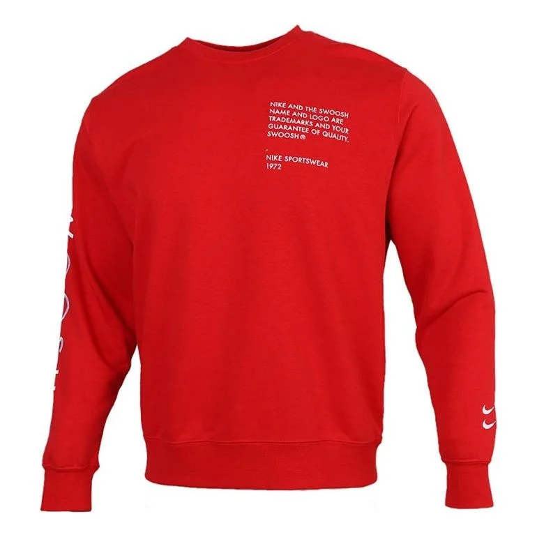Nike Sportswear Swoosh Solid Color Alphabet Round Neck Pullover Large Red CU4035-657
