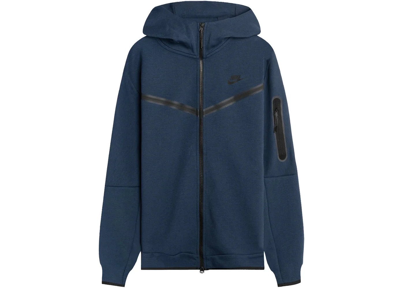 The Nike Tech Fleece Hoodie Midnight Navy Black has a lightweight insulator layer and comes in a Midnight Navy Black colorway. This Fleece Hoodie by Nike has a 4-panel hood that has a streamlined look. This product also features a zippered pocket on the left sleeve that provides storage for essentials, like keys and a phone. This clothing item also features transparent taping highlighting heritage design lines on the front hoodie closure zip and on the zippered sleeve pocket. With a suggested retail price of $130, the Nike Tech Fleece Hoodie Midnight Navy Black went on sale for the first time on July 25, 2022. - Season SS22 - Color Midnight Navy/Black - Release Date 2022-07-25 - Style CU4489-410 - Retail Price 130 - Featured false