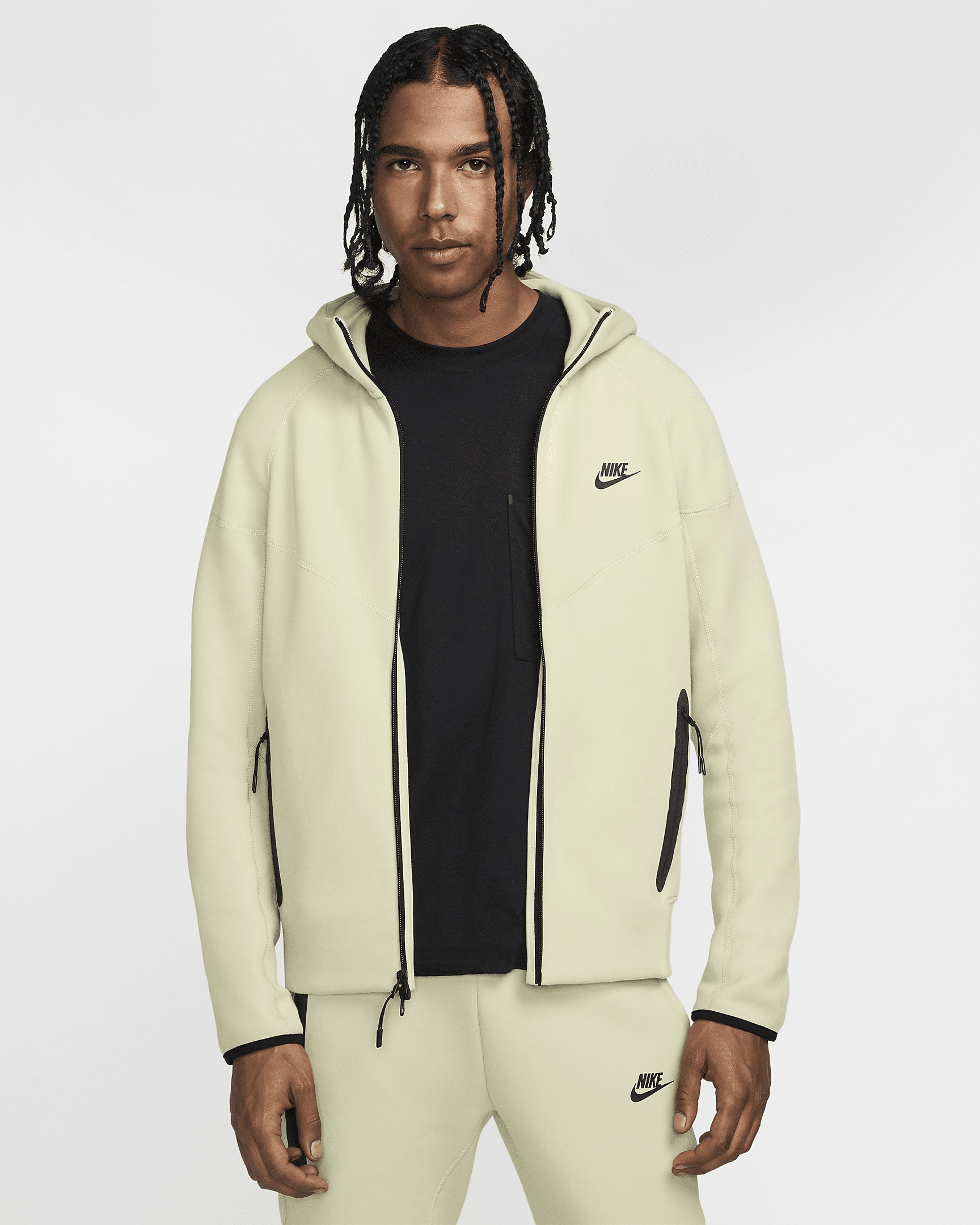 Blending 2 of our most iconic looks, this full-zip hoodie draws design inspiration from our timeless Windrunner jacket as well as our Tech Fleece jacket. It's designed to feel relaxed through the shoulders, chest and body for an athletic fit you can layer. Our premium, smooth-on-both-sides fleece feels warmer and softer than ever, while keeping the same lightweight build you love. Benefits - Subtle Windrunner lines nod to the classic running jacket from the late '70s. - Dropped shoulders and paneled sleeve design helps you move with less restriction. - Partial elastic hem helps seal in your warmth and hold the hoodie in place when you move. - Zippered hand pockets feature the signature Tech Fleece taped pocket surround. - Full-zip design with a scuba hood lets you adjust your style and coverage. Product Details - Nike Futura logo at left chest - Body/Hood Lining: 53% cotton/47% polyester. Pocket Bag Knuckle Side: 100% cotton. - Machine wash - Imported - Shown: Olive Aura/Black - Style: FB7921-371 SIZE & FIT Model is wearing size M and is 6′2″188cm Big & Tall model is wearing size 3XL and is 6'1"185cm Standard fit: easy and traditional If you typically wear men's styles, please select your usual size. If you typically wear women's styles, please size down.