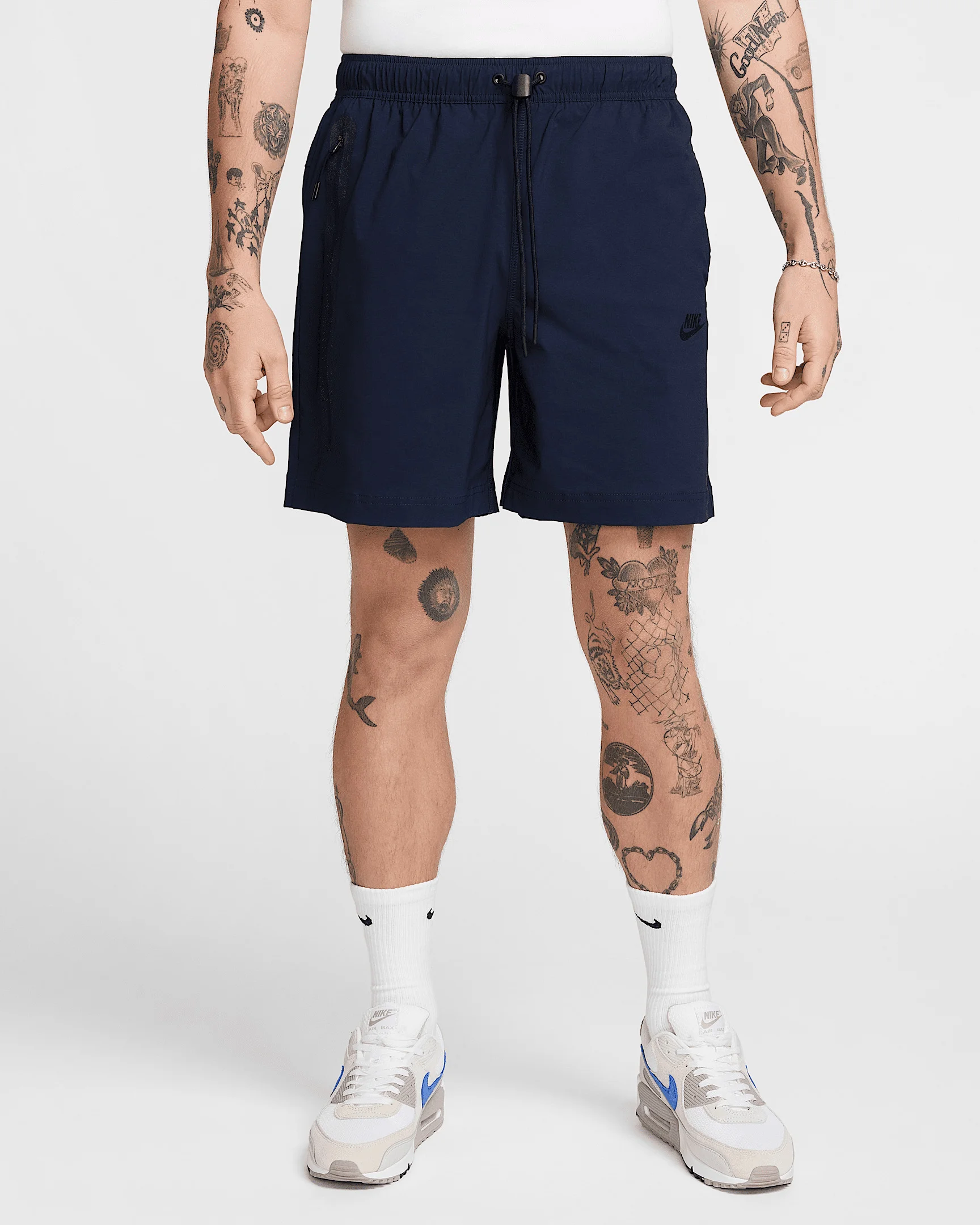 Bringing the fresh Tech aesthetic, these shorts have polished details like an extra-long Tech pocket and a bolo-inspired drawcord. They're crafted with smooth, stretchy material and have a 6" inseam that hits just above the knee. Benefits - The loose fit feels roomy through the seat and thighs for easy movement and casual styling. - An elastic waistband and adjustable waist toggle deliver a comfortable fit at your waist. Product Details - Zippered side pocket - Back snap pocket - Body: 94% Nylon/6% Spandex; Pocket Bags: 100% Polyester. - Machine wash - Imported - Shown: Obsidian/Black - Style: HQ0470-451 SIZE & FIT Model is wearing size M and is 6′0″183cm Loose fit: roomy and relaxed