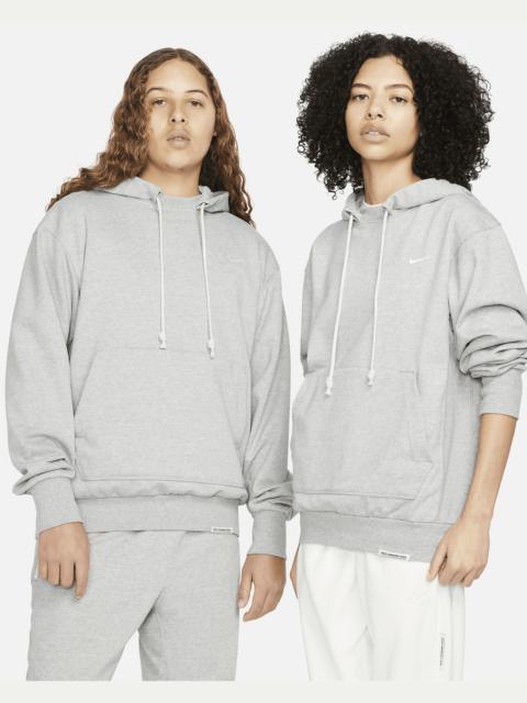 This sweat-wicking hoodie combines a classic look with the feel of modern performance for beyond the basketball court. It's soft, yet heavyweight, with coverage that's ready to go right out of your gym bag. Benefits - Nike Dri-FIT technology moves sweat away from your skin for quicker evaporation, helping you stay dry and comfortable. - Heavyweight French terry fabric has a soft, comfortable feel. - Zippered pocket at the right side is large enough to store most phones. Product Details - Ribbed neckband, side panel, cuffs and hem - Front pocket - Standard Issue woven label - Embroidered Swoosh graphic - Body: 61% cotton/39% polyester. Rib: 97% cotton/3% spandex. Hood lining: 100% cotton. - Machine wash - Imported - Shown: Cobalt Bliss/College Blue/College Blue - Style: DQ5818-479 SIZE & FIT Model is wearing size M and is 6′2″188cm Loose fit: roomy and relaxed