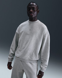 When you want to take your game outside but the temps are a tad chilly, throw on this crew on this loose fitting crewneck. It’s made Nike Therma-Fit, so you can stay warm and keep scorching those nets. Benefits - Nike Therma-FIT technology helps manage your body’s natural heat to help keep you warm in cold-weather conditions. Product Details - Loose fit - French terry with brushed interior - Ribbed collar, cuffs and hem - Hanger loop - Body: 52% polyester/48% cotton. Rib: 96% cotton/4% spandex. - Machine wash - Imported - Shown: Dark Grey Heather/Black - Style: IM5901-063 SIZE & FIT Loose fit: roomy and relaxed