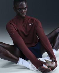 Using insights from runners like you, we prioritized functionality to refresh our Stride essentials. This lightweight mid-layer top has been designed to help reduce chafing and improve breathability. It's sweat-wicking and helps block out UV rays, so you can focus on your pace. Product Details - Reflective graphics on sides and back - Reflective Swoosh logo - Not intended for use as Personal Protective Equipment (PPE) - This product provides UVA and UVB protection from the sun in the areas covered by the garment. To protect exposed areas, the use of good quality sunscreen is recommended. - 1/4-length zipper - Body: 88% polyester/12% spandex. Panels: 89% polyester/11% spandex. - Machine wash - Imported - Shown: Burgundy Crush - Style: HV2180-652 SIZE & FIT Model is wearing size M and is 6′1″184cm Standard fit: easy and traditional