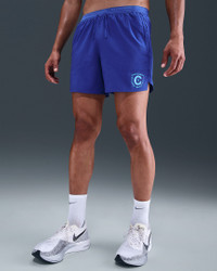 These Stride shorts celebrate the Bank of America Chicago Marathon. Sweat-wicking Dri-FIT technology plus a built-in supportive brief and functional storage help you keep the pace. More Benefits - Designed for Running - Length: 5" - Liner: Brief - Fabric: Lightweight and breathable woven - Storage: Side pockets and zippered back pocket - Waistband: Narrow with drawcord Product Details - Body: 100% polyester. Panels: 94% polyester/6% spandex. Brief: 89% polyester/11% spandex. - Machine wash - Imported - Shown: Deep Night - Style: HQ4204-539 SIZE & FIT Model is wearing size M and is 5′11″179cm Standard fit: easy and traditional