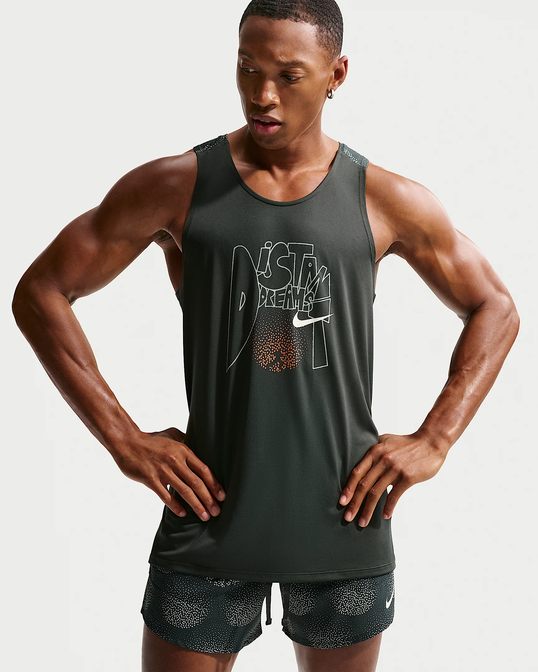 Go the distance in this lightweight tank top. Updated with fresh graphics, it features soft knit fabric and advanced sweat-wicking tech to help keep you dry and comfortable. Benefits - Nike Dri-FIT ADV technology combines moisture-wicking fabric with advanced engineering and features to help you stay dry and comfortable. - Side hem vents allow for freedom in your movements. Product Details - 100% polyester - Machine wash - Imported - Shown: Black Spruce - Style: IO0525-317 SIZE & FIT Model is wearing size M and is 5′11″179cm Standard fit: easy and traditional