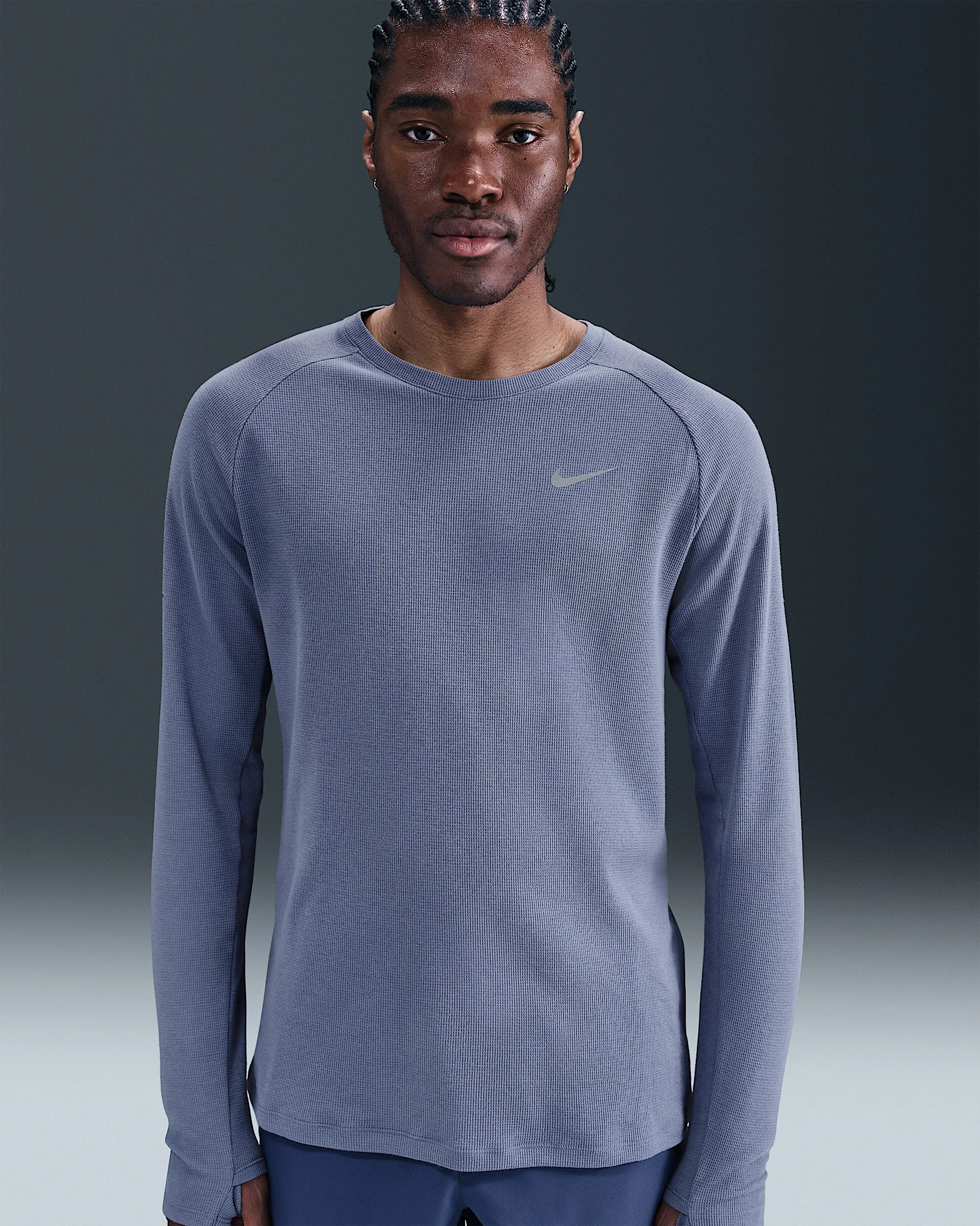 Using insights from runners like you, we made this Stride Waffle Crew with utility in mind. It pairs soft waffle-knit fabric with sweat-wicking Dri-FIT technology to help you stay warm and dry from warm-up to cool down. Benefits - Nike Dri-FIT technology moves sweat away from your skin for quicker evaporation, helping you stay dry and comfortable. - Waffle knit fabric has a peached texture for extra warmth and softness. Product Details - Reflective pills and Swoosh logo - 65% polyester/35% cotton - Machine wash - Imported - Not intended for use as Personal Protective Equipment (PPE) - Shown: World Indigo - Style: HV2705-499 SIZE & FIT Model is wearing size M and is 6′2″188cm Standard fit: easy and traditional