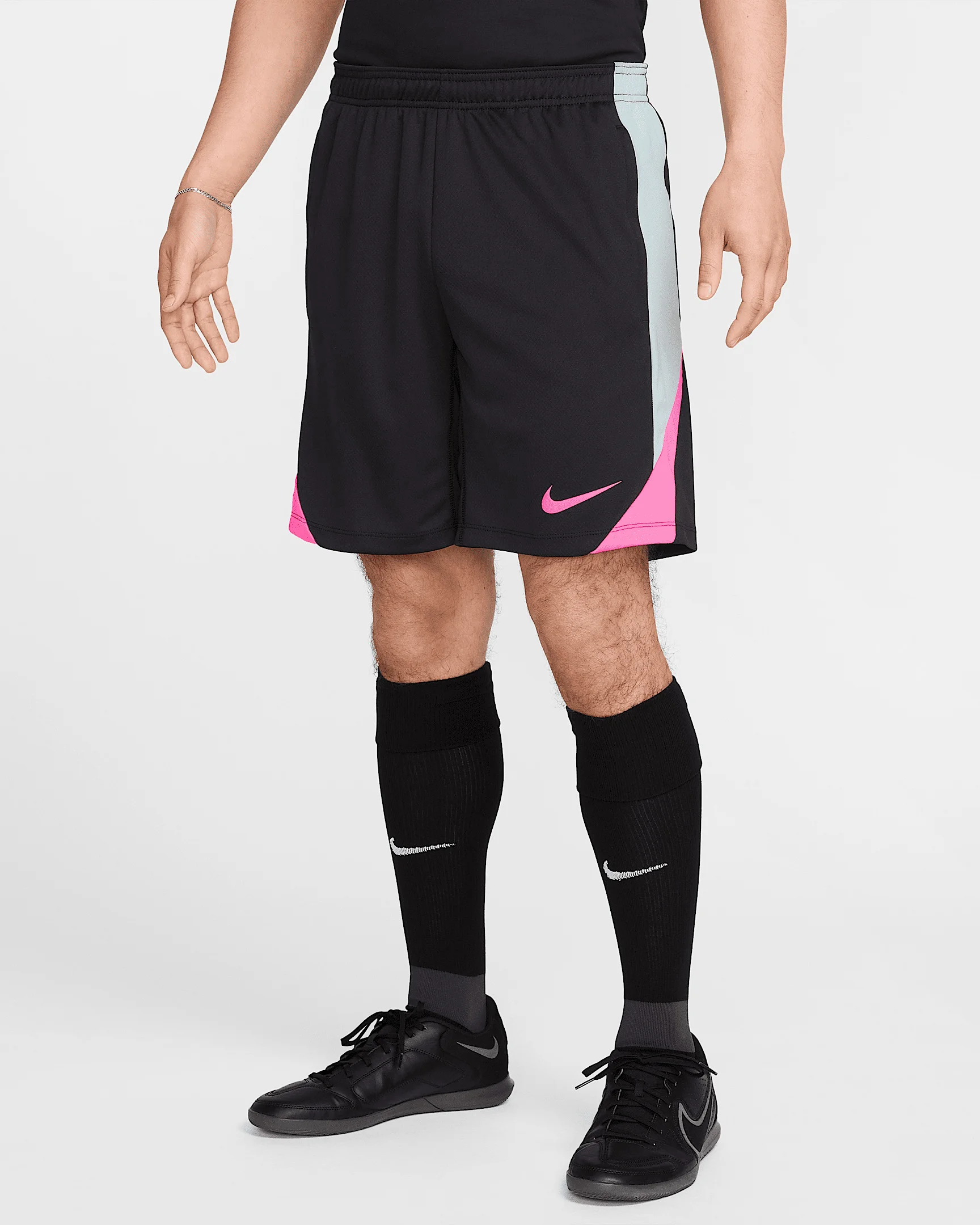 Be your best with the Nike Strike collection—apparel for both elite soccer players and rising stars that helps keep the sweat away on the field. Breathable and sweat wicking, these shorts also have a gusset panel to keep your movement natural and unrestricted. Benefits - Nike Dri-FIT technology moves sweat away from your skin for quicker evaporation, helping you stay dry and comfortable. - Slightly textured stretch-knit fabric is lightweight and breathable. - Elastic waistband with drawcord provides a fit that feels just right. - Gusset design helps maintain a natural range of motion. Product Details - Hand pockets - Ribbed panels - 100% polyester - Machine wash - Imported - Shown: Black/Ocean Cube/Hyper Pink/Hyper Pink - Style: FN2401-016 SIZE & FIT Model is wearing size M and is 5′11″180cm Standard fit: easy and traditional