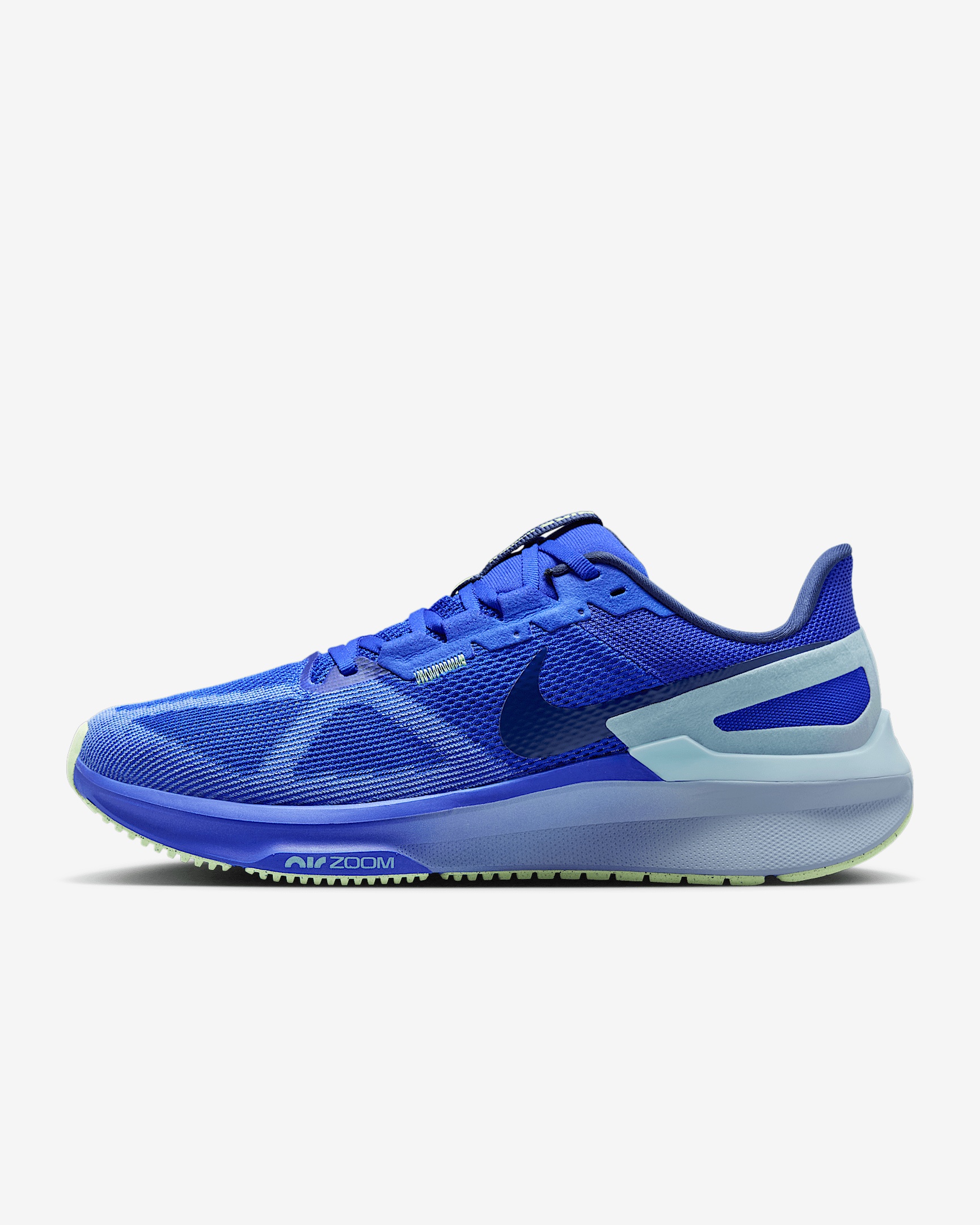 Supportive cushioning provides steadiness for everyday runs. Experience a stable platform without sacrificing performance with a combination of Cushlon 3.0 foam and a Zoom Air unit. Plus, a higher stack height makes it more comfortable, stable, and supportive than ever. Benefits - Breathable engineered mesh upper has targeted zones for support - Cushlon 3.0 foam midsole with a Zoom Air unit in the forefoot for cushioning and stability - Durable waffle outsole for grip and stability - Midfoot support system for enhanced arch support to control pronation - What’s New? New Cushlon 3.0 foam underfoot and a higher stack height make it our most stable and supportive model yet. Product Details - Weight: Approx. 289g/ 10.2oz (Men's US 10) - Heel-to-toe drop: 10mm - MR-10 Last - Our best, most consistent fit - Not intended for use as Personal Protective Equipment (PPE) - Shown: Hyper Royal/Light Armory Blue/Polar/Midnight Navy - Style: DJ7883-403