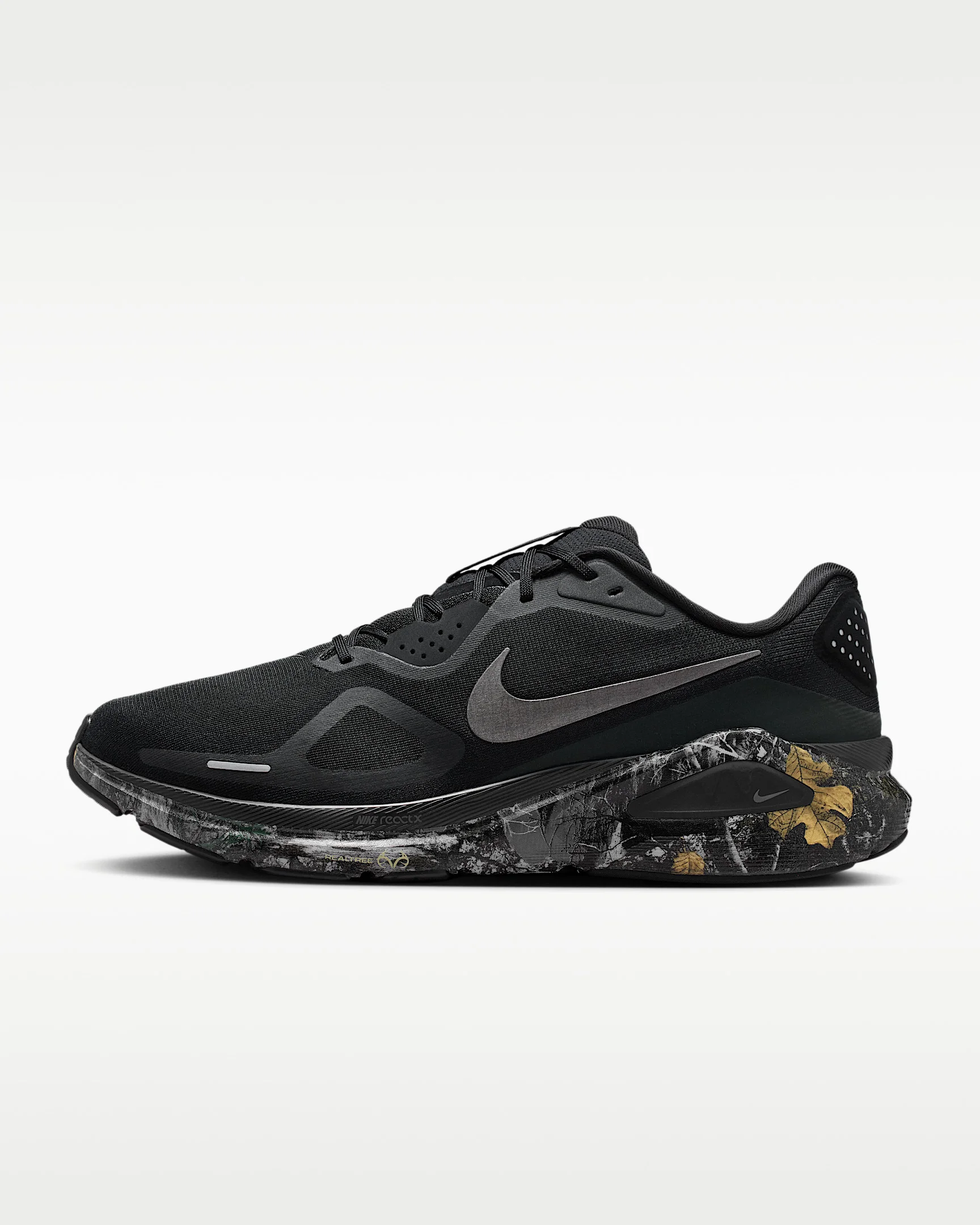 Supportive cushioning in the Structure 26 provides steadiness for everyday runs. A full-length ReactX midsole delivers a cushioned, yet stable transition from heel to toe off. A tried-and-true midfoot support system wraps around your arch and heel to provide a firm platform. Plus, this edition is elevated with a Realtree® camo graphic on the midsole. More Benefits - ReactX foam underfoot and higher stack height for stability and support - Lighter, more flexible rubber in forefoot of outsole for cushioning - High-abrasion rubber in heel for increased durability Product Details - Weight: Approx. 321g/11.3 oz (Men's US 10) - Heel-to-toe drop: 10mm - Reflective details - Not intended for use as Personal Protective Equipment (PPE) - Shown: Black/Dark Smoke Grey/Anthracite/Metallic Dark Grey - Style: IF4487-001